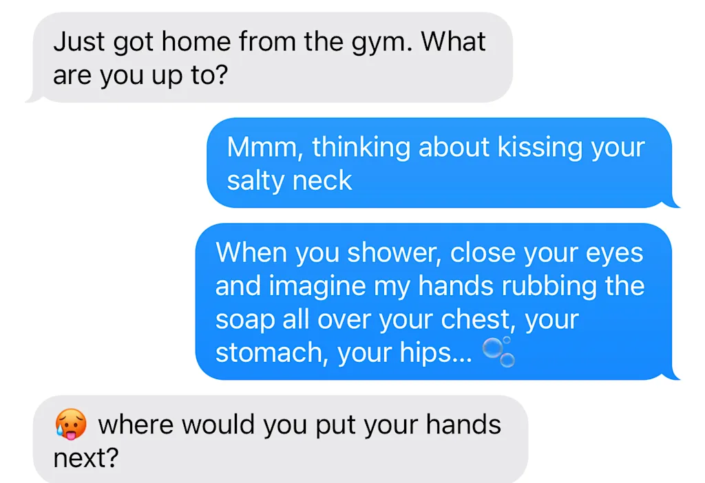 Not sure how to initiate sexting? The first message actually shouldn’t be sexual — start by communicating your intentions and asking for consent. You may think anyone would be thrilled to get your latest nude, but that’s not always the case. Receiving an unsolicited suggestive text can feel incredibly violating, regardless of the sender or sendee’s gender. And remember that you and your partner have the right to revoke consent at any time.